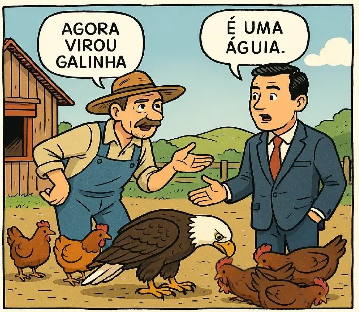 “Não”, insistiu o camponês. “Ela virou galinha e jamais voará como águia.”